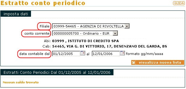 Navigation: Conti correnti > Estratto conto periodico |